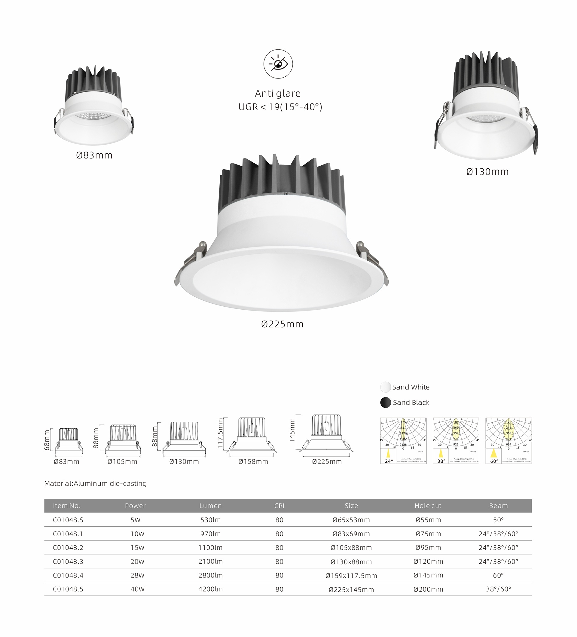 ·Optics optional: 15° 20° 24° 38° 60°